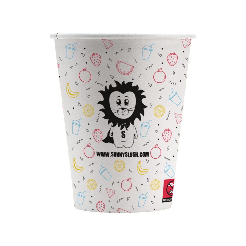 Genuss mit gutem Gewissen: Unser bedruckter SunnySlush® Papierbecher (0,2 L) vereint umweltfreundliches Material mit unserem markanten Logo – perfekt für kühlen Slush-Eis-Genuss oder heiße Getränke to go.