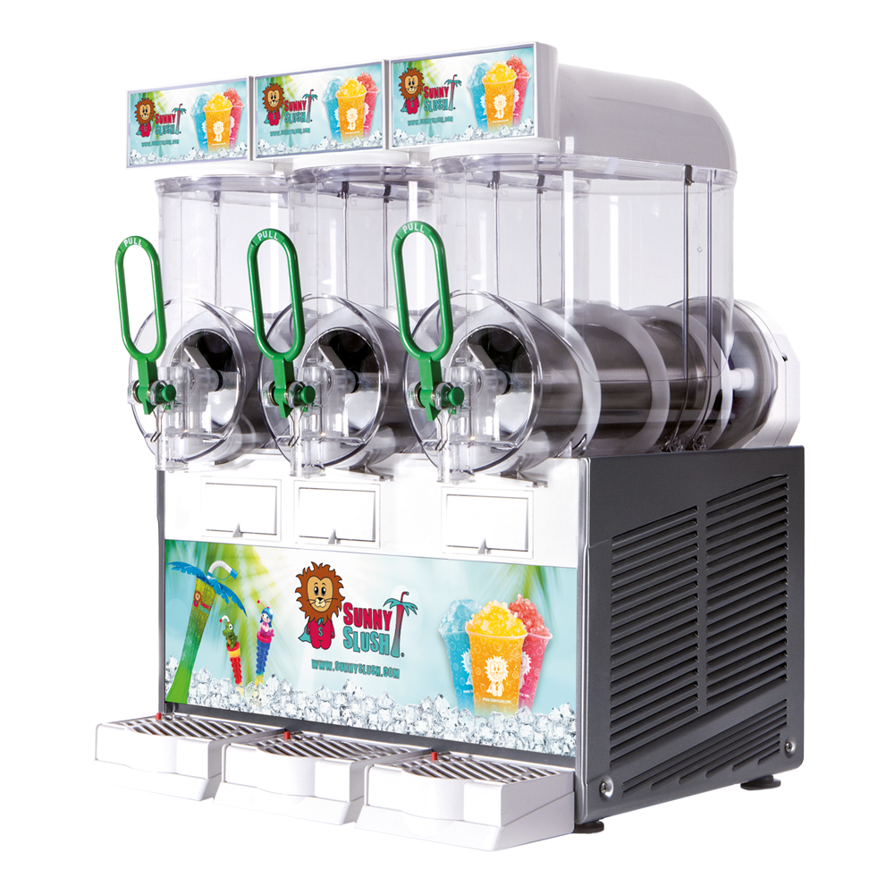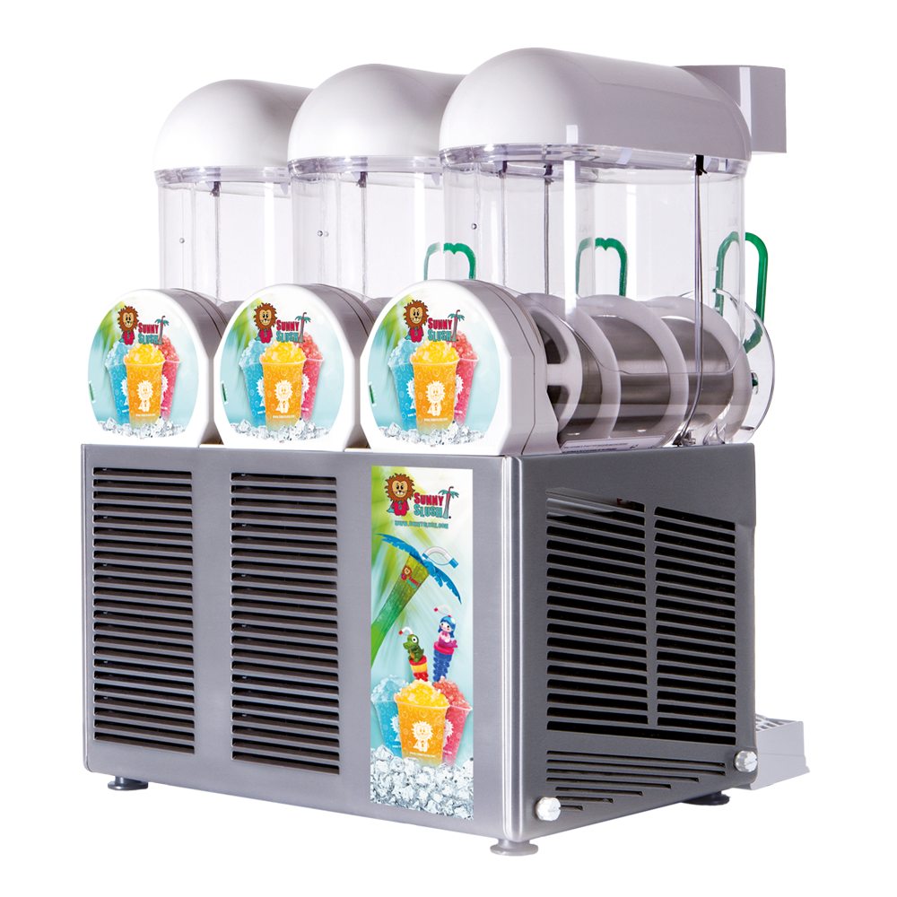 Dreifache Power für dreifachen Slush-Spaß: Mit der POWER Slush-Eismaschine (3 × 10 L, 1.300 W) servieren Sie im Handumdrehen köstliches SunnySlush®.