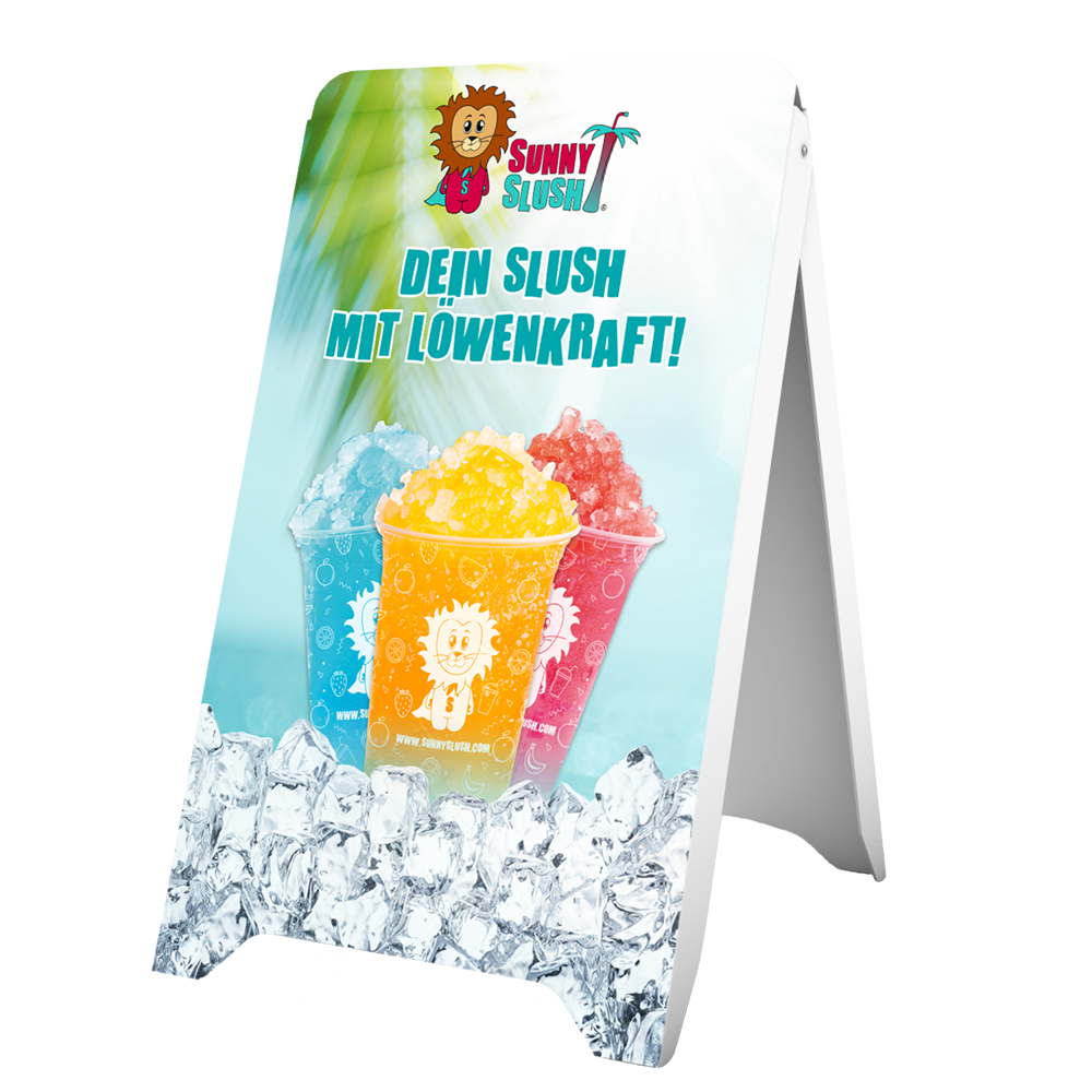 - ✓ Stimmiger Markenauftritt: ergänzt Slushmaschinen und Sortenaufkleber im SunnySlush® Look