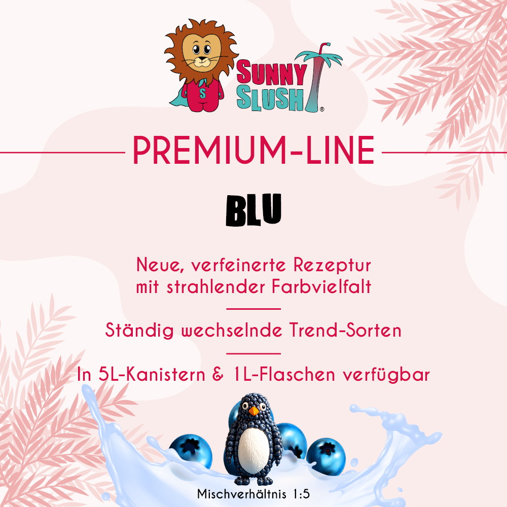 Die SunnySlush® Premium-Line steht für verfeinerte Rezepturen, strahlende Farbvielfalt und starke Sortencharaktere. Der SunnySlush® Sirup – Blu 1 Liter (Premium-Line) kombiniert frechen Pinguin-Charme mit intensiver Blaubeer-Power und blauem Auftritt – ideal für Standorte, die einen auffälligen Slush-Blickfang im Sortiment setzen möchten.