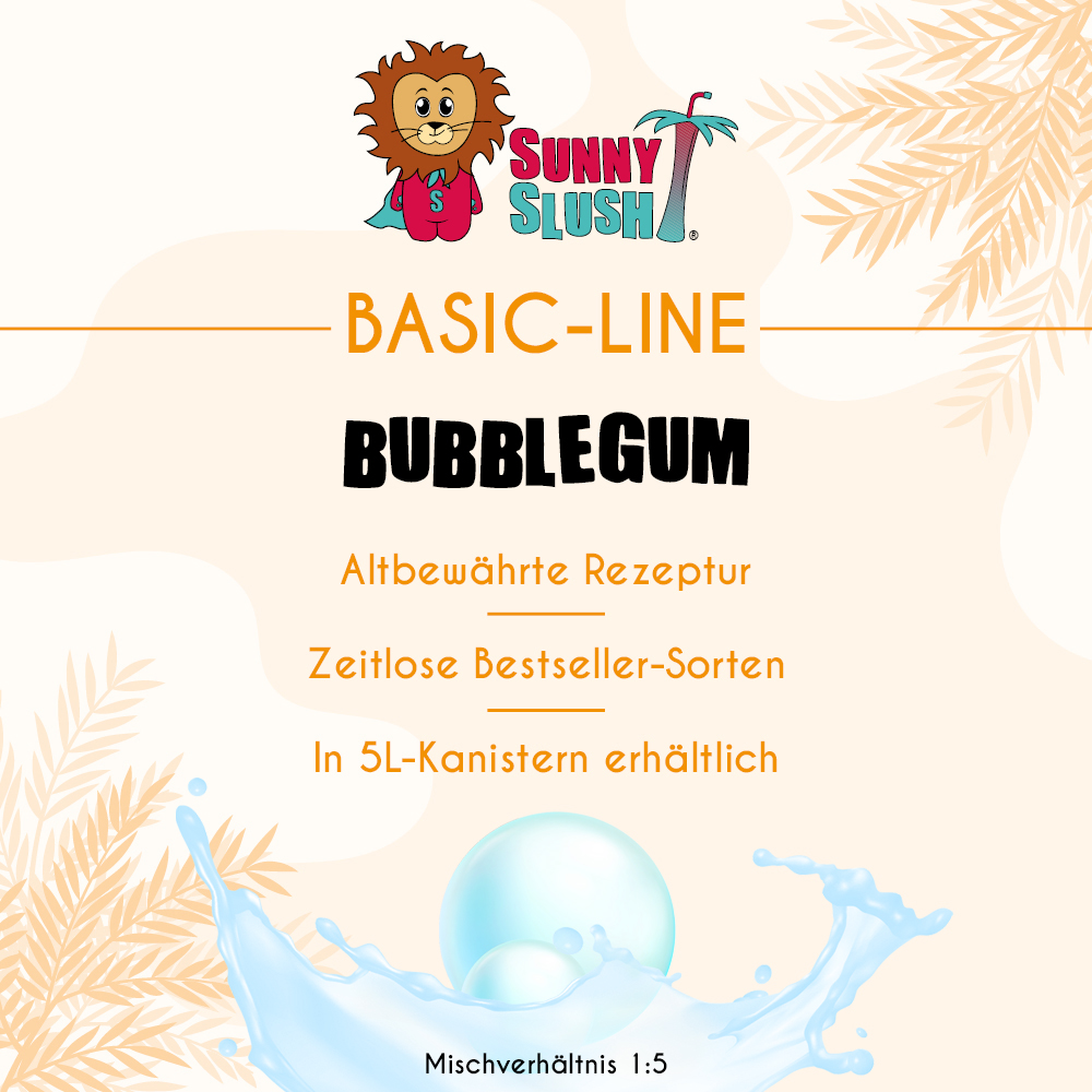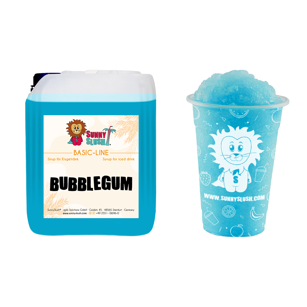 Die SunnySlush® Basic-Line steht für alltagstaugliche Slush-Sirupe mit bewährten Klassik-Sorten und Trendgeschmäckern. Bubblegum ist der bunte Hingucker im Sortiment – mit intensivem Aroma, auffälliger Farbe und einfacher Handhabung in jeder Slushmaschine. Entdecke auf unserer SunnySlush® Basic-Line für Slush-Sirupe und unseren weiteren Slush-Sirupe von SunnySlush® passende Sorten für dein Angebot.