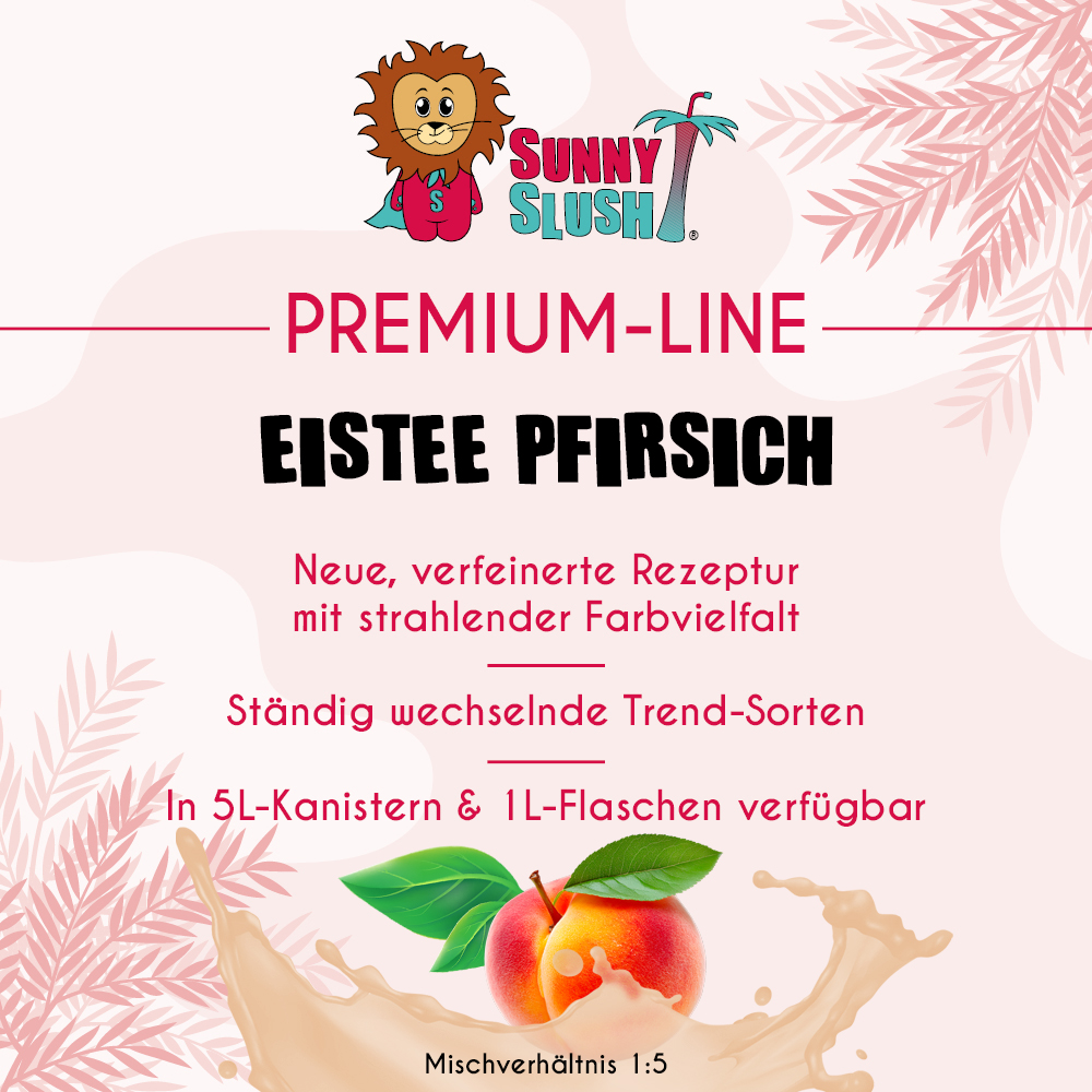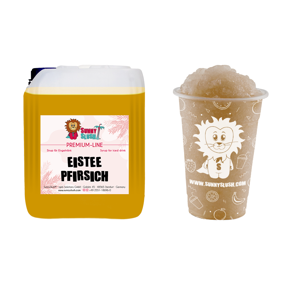 SunnySlush® Eistee Pfirsich-Sirup 5 Liter (Premium-Line) – Eistee Pfirsich Slush Sirup im 5 L-Kanister