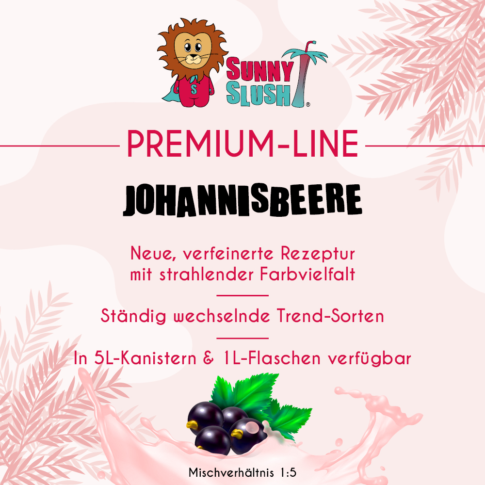 - ⪘ Auch als 1 L-Premium-Flasche: ideal für Probieraktionen, ergänzende Beerensorten und kleinere Slush-Maschinen – jetzt als SunnySlush® Johannisbeere-Sirup 1 Liter (Premium-Line) entdecken