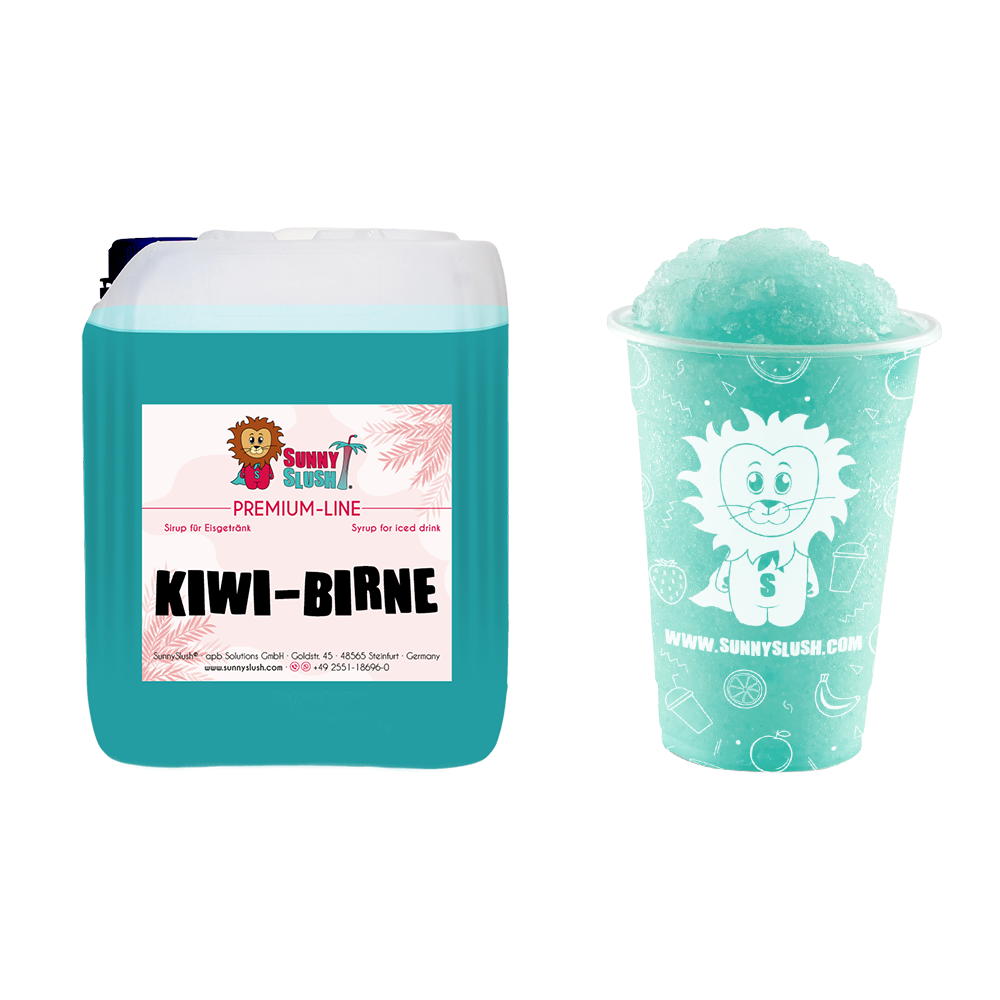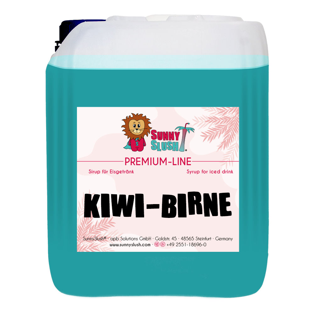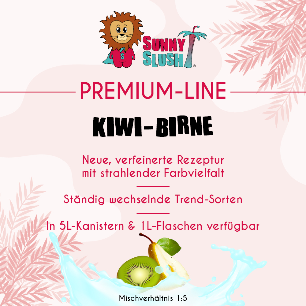 - ⪘ Auch als 1 L-Premium-Flasche: ideal für kleinere Bedarfe & Sortiments-Tests – jetzt als SunnySlush® Kiwi-Birne-Sirup 1 Liter (Premium-Line) entdecken