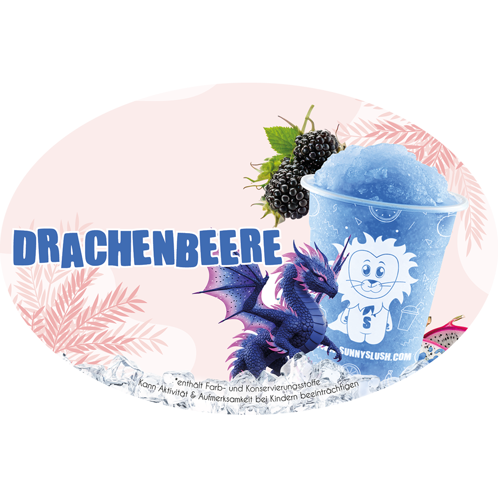 Mit dem Sortenaufkleber – Drachenbeere (Premium-Line) hebst du die Slush-Sorte „Drachenbeere“ bewusst hervor – ideal für Freizeitparks,