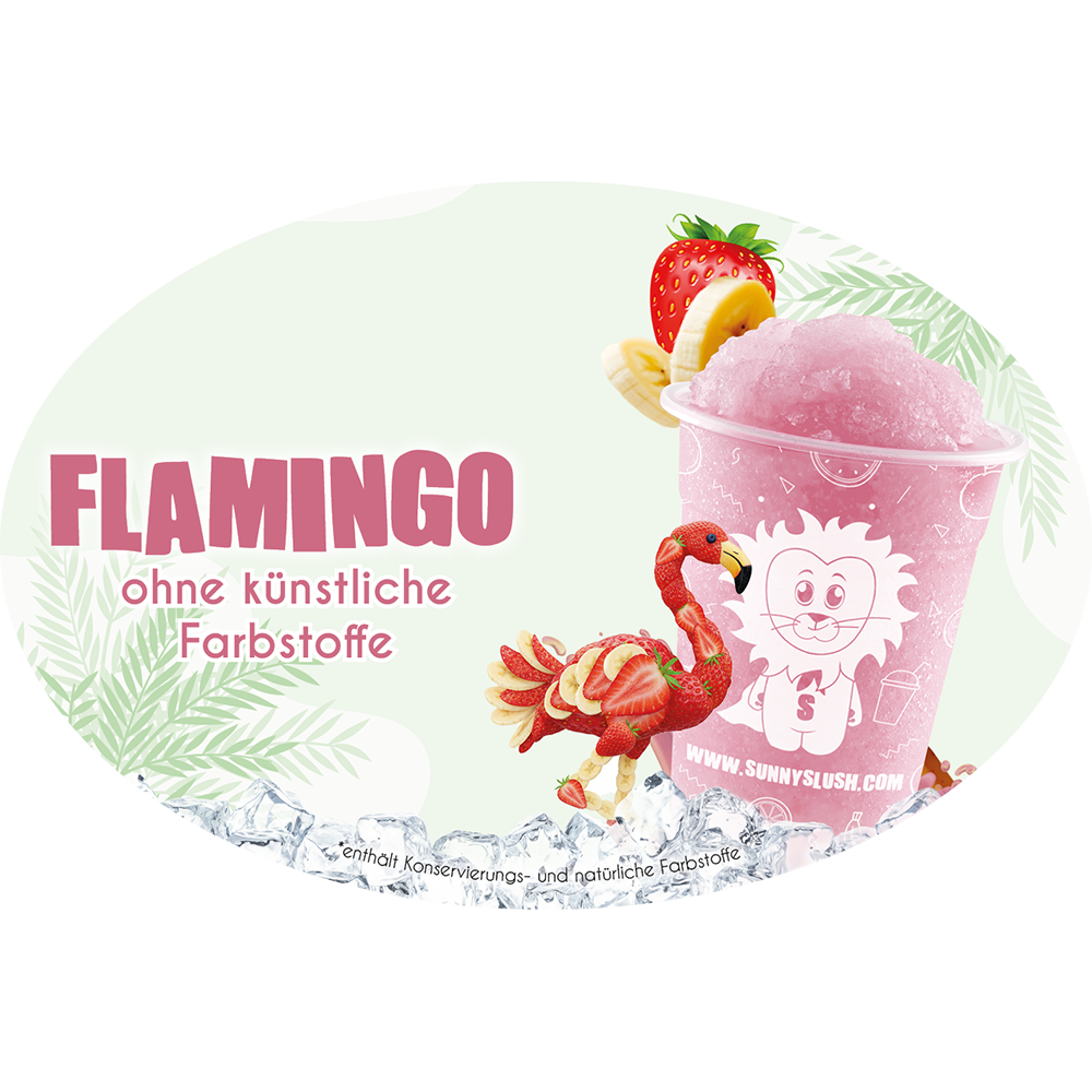 Sortenname und klarer Linienkennzeichnung macht sichtbar, dass hier ein Flamingo-Slush ohne künstliche