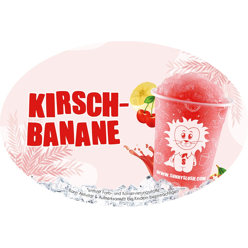 Der Sortenaufkleber – Kirsch-Banane (Premium-Line) von SunnySlush® macht die beliebte Premium-Sorte „Kirsch-Banane“