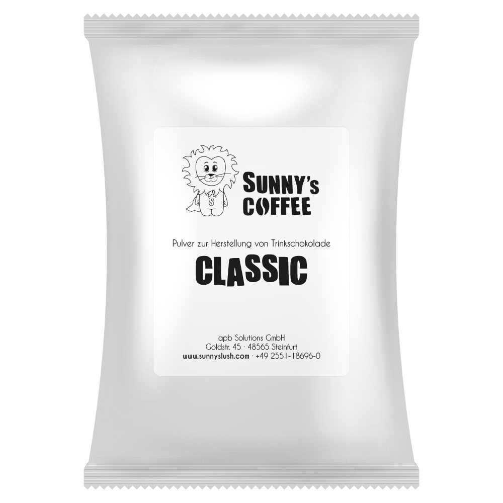 Mit unserem Classic Trinkschokolade-Pulver lösen Sie 600 g feinstes Kakao-Konzentrat in 3 Liter Milch auf und befüllen Ihren Heißgetränkespender – für cremig-süßen Trinkgenuss.