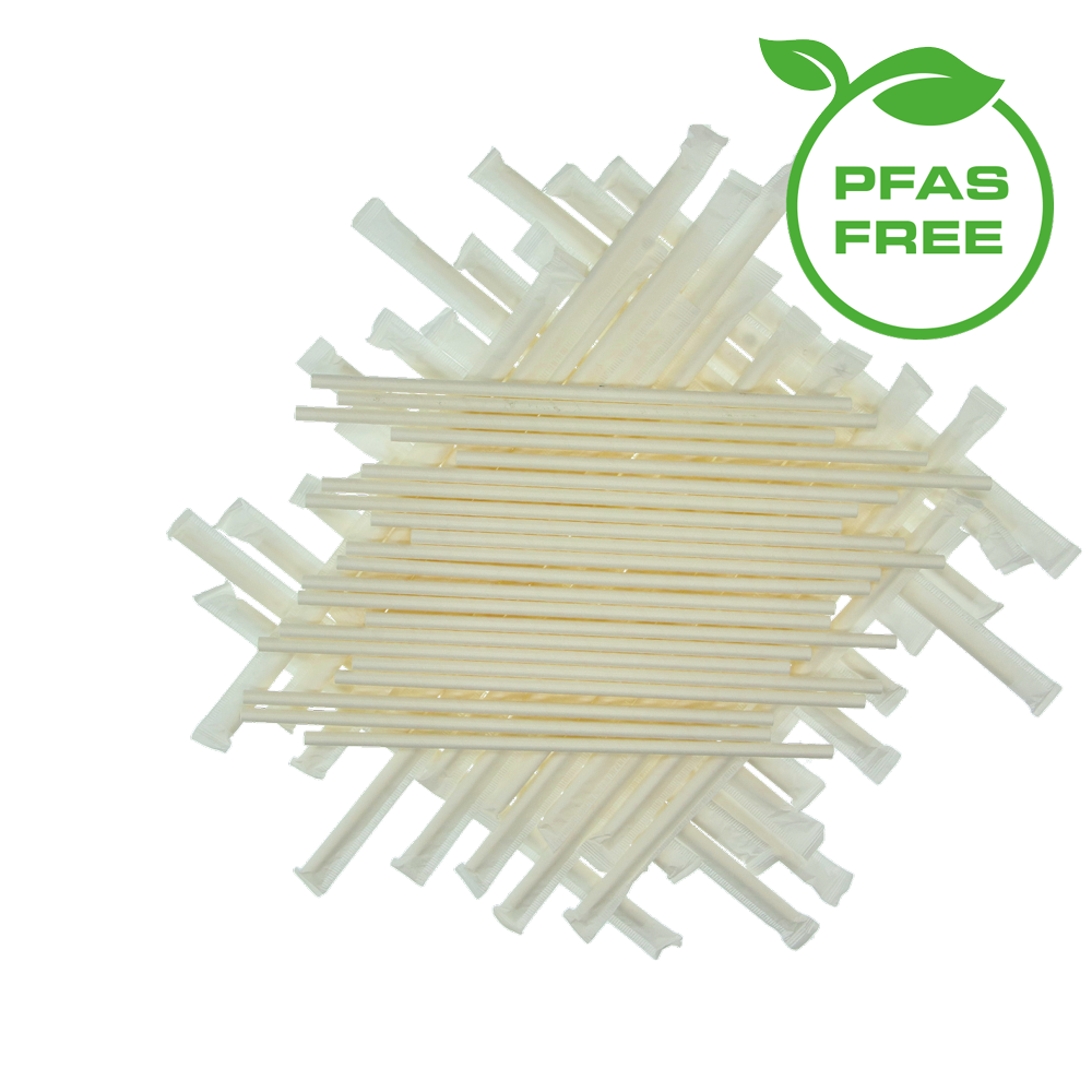 Sauber serviert – unsere weißen Bio-Trinkhalme sind hygienisch einzeln verpackt und damit perfekt für den Einsatz bei Events, To-Go-Getränken oder in der Gastronomie.