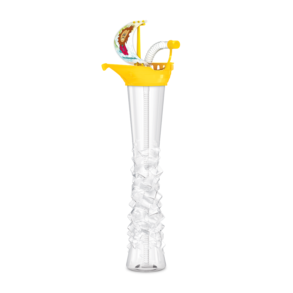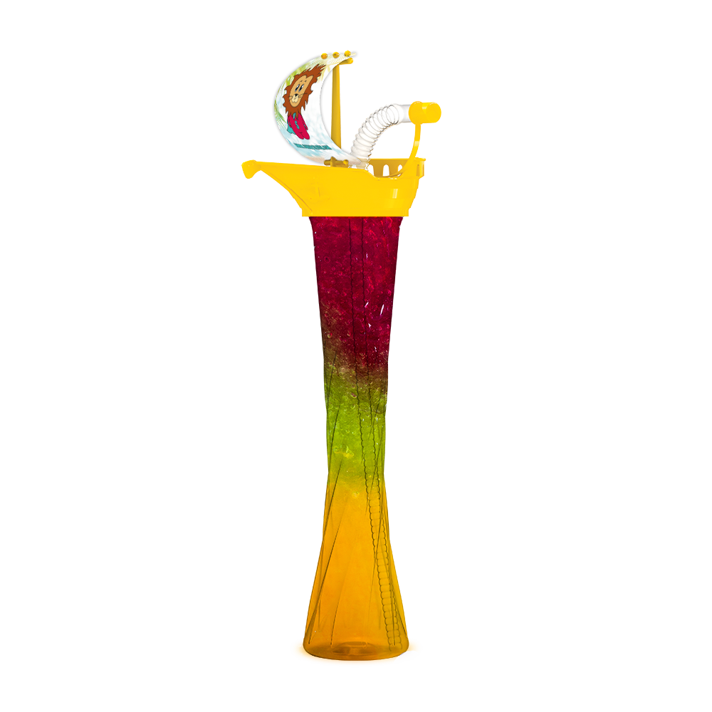 Bring Sonne ins Spiel mit dem SunnySlush® Yard-Cup Schiff mit Logo in strahlendem Gelb – leuchtender Maritimi-Look und Premium-Branding für 350 ml oder 500 ml spritzigen Slush-Spaß.